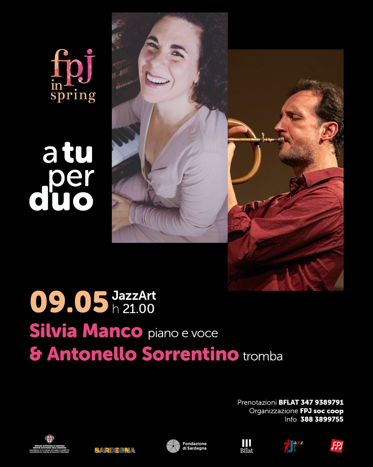 La pianista e cantante Silvia Manco e il trombettista Antonello Sorrentino con il progetto Let’s Duet: un dialogo elegante e contemporaneo che attraversa il songbook americano, la canzone d’autore internazionale e suggestioni cinematografiche rilette con sensibilità contemporanea e grande attenzione all’interplay; un incontro che alterna intimità e vivacità ritmica, valorizzando la complementarità tra voce, pianoforte e tromba. La pianista e cantante Silvia Manco è una musicista completa, attiva tra jazz e canzone d’autore, con collaborazioni che spaziano da Roberto Gatto a Renzo Arbore e Massimo Ranieri. Accanto all’attività dal vivo, porta avanti un percorso discografico personale che unisce tradizione e ricerca, con lavori recenti come Con Alma (2021) e Hip! The Blossom Dearie Songbook. Il trombettista e compositore Antonello Sorrentino si distingue per uno stile che fonde lirismo e complessità. Attivo anche come arrangiatore e direttore, ha guidato la Metropolitan Jazz Orchestra, firmando musiche e arrangiamenti per l’album Volere Volare (2024).